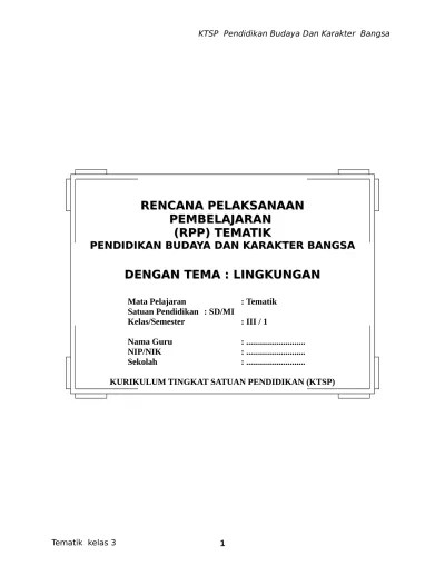 Rpp Kelas 3 Sd Ktsp 2006 Doc : Cover Rpp Sd Doc : Rpp kelas 3 ktsp semester 1 & 2 lengkap tematik format doc tahun …. Pada artikel sebelumnya penulis pernah membahas perihal rpp dan silabus berkarakter sd kelas 2 kurikulum ktsp/2006. Download rpp kelas 3 kurikulum 2013 dan ktsp yang berisi sk & kd, prota, promes, silabus, kkm. Soal bahasa indonesia kelas 8 semester . Rpp matematika kelas 3 contoh rpp kelas 2 sd ktsp 2006 semester. File unduhan dapat diedit menggunakan office.