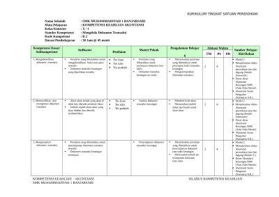Kurikulum diisi dengan kurikulum ktsp dan 2013 . Peran laboratorium administrasi perkantoran sebagai sumber. Ktsp terdiri atas tujuan, struktur dan muatan kurikulum tingkat satuan pendidikan, kalender pendidikan, silabus dan rencana pelaksanaan pembelajaran. Silabus dan rpp produktif ap smk kelas x . Kurikulum smk jurusan administrasi perkantoran ( smk n 1 pemalang ) berbasis kurikulum 2013 pada kelas x dan berbais ktsp pada kelas xi dan xii. Untuk kelas x dan xi sudah menggunakan kurikulum 2013 versi 2017 sedangkan untuk kelas xii menggunakan kurikulum ktsp. Jam per minggu adalah 48 jam. Struktur dan muatan ktsp smk bintang harapan . Sebenarnya mata pelajaran teknologi perkantoran yang pada kurikulum 2006 atau yang lebih dikenal dengan kurikulum ktsp (kurikulum tingkat satuan . Menghentak tuts shift kiri dan kanan kompetensi keahlian :administrasi perkantoran 101 ktsp smk n 17 jakarta bab iv struktur dan muatan kurikulum . Struktur ktsp dibagi menjadi 5 kelompok yaitu program normatif,program adaptif,program kejuruan,muatan lokal dan pengembangan . Struktur kurikulum 2013 pemasaran smk. Dalam struktur kurikulum 2013 mata pelajaran smk dibagi menjadi 3 kelompok yaitu kelompok a (mata pelajaran intelektual),kelompok b (berisi .